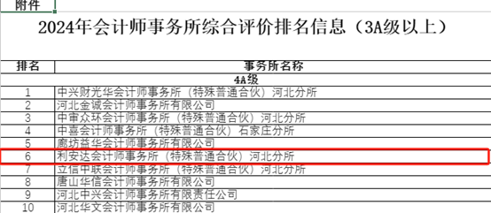 利安達(dá)河北分所在2024年河北省會(huì)計(jì)師事務(wù)所綜合評(píng)價(jià)中位列第6名
